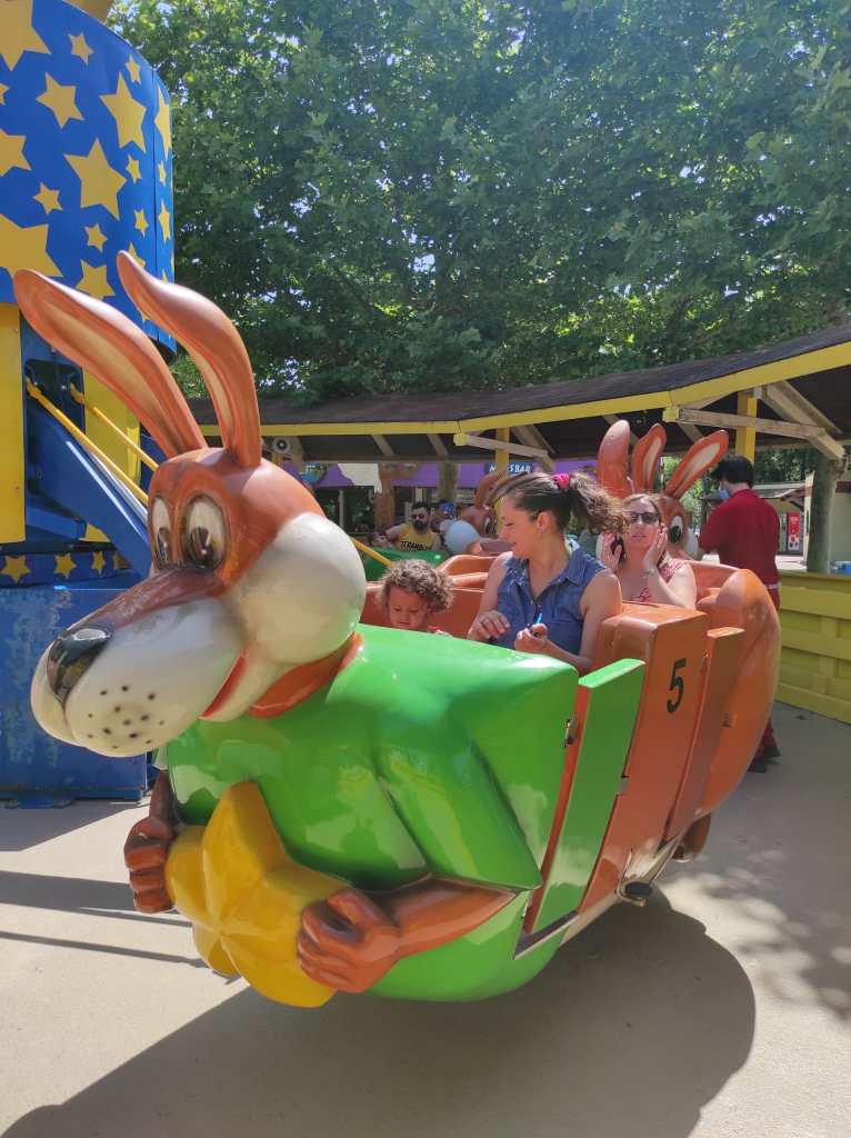 Il parco è bello, forse indicato per bimbi da 5 anni in su, ma anche per Benedetta non sono mancate le attrazioni da fare. Solo, fa molto, troppo caldo e solo la piazza con le fontane e i getti d’acqua rinfrescanti sono riusciti a darci sollievo. Ci sono delle aree tematiche, il West, i Dinosauri, il Ducati World, molte altre attrazioni. Giostre per i piccoli e anche per i grandi! Molti posti dove mangiare, noi per comodità abbiamo optato per un semplice McDonald’s. Molto bello anche lo spettacolo, Benedetta se l’è goduto ammirando SpongeBob e gli altri personaggi. Tanti infine sono gli shop dove acquistare qualche ricordo, calamite, magliette o peluche.