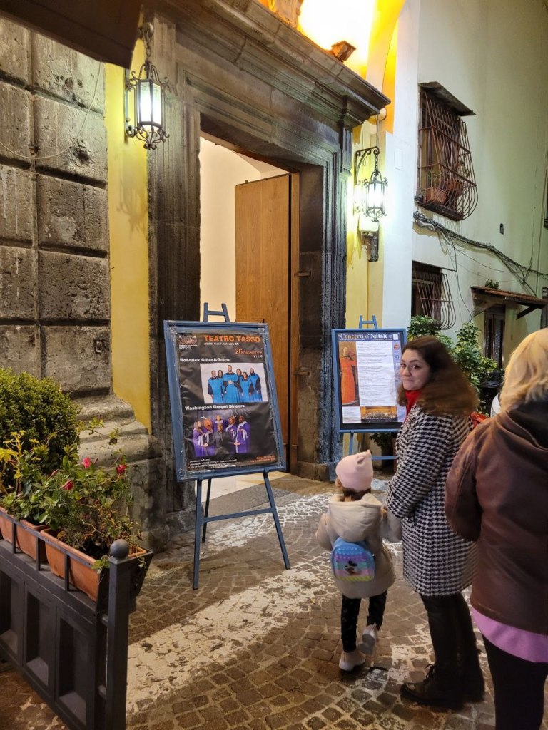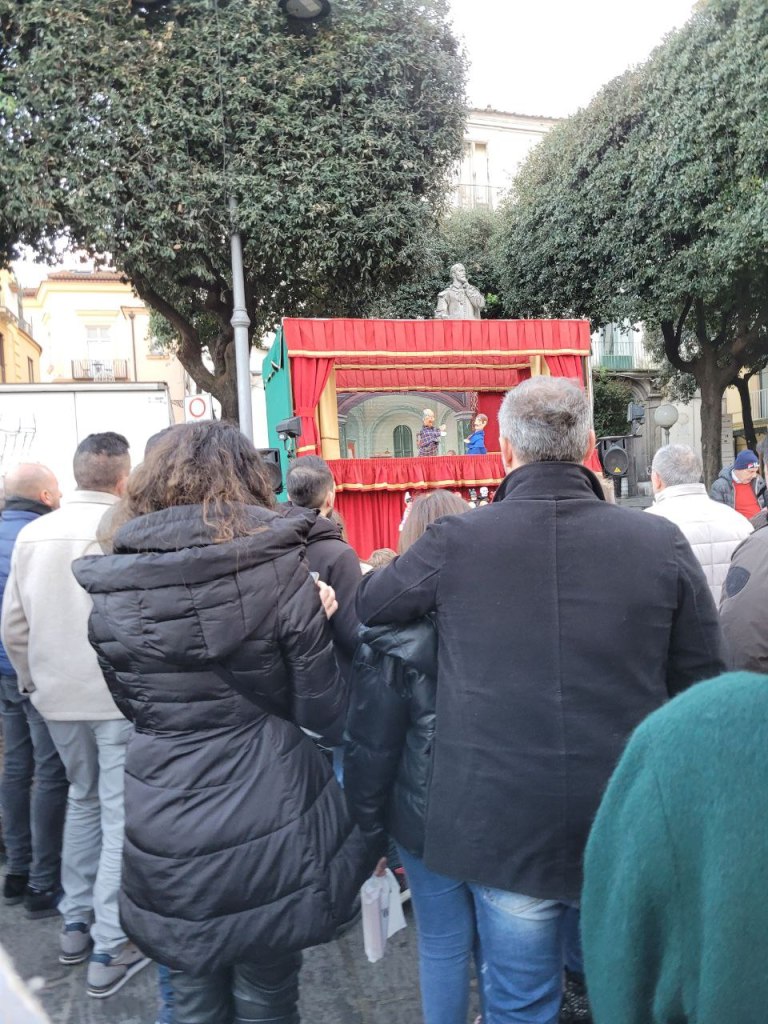 Arrivati lì al mattino abbiamo – grazie anche all’ospitalità di Zia Adelaide e di Nonna Tonia – potuto fare una serie di cose molto divertenti soprattutto per Benedetta. Su tutte: la prima volta a teatro per Benni a sentire un coro gospel e il Presepe vivente a Casarlano, frazione di Sorrento. E poi anche un divertente spettacolo di marionette in piazza, con i personaggi della tradizione come Pulcinella.